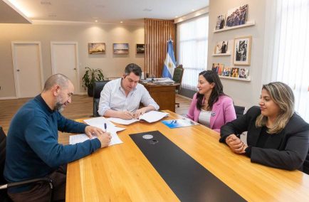 El intendente Martín Perez y el director ejecutivo del Consejo Latinoamericano de Ciencias Sociales (CLACSO), Dr. Pablo Vommaro, encabezaron la firma ...