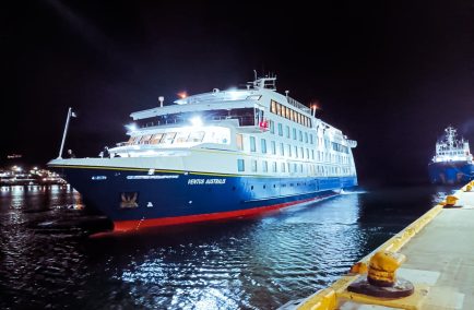 Autoridades de la Dirección Provincial de Puertos (DPP), recibieron este jueves pasada la medianoche, al buque de bandera chilena Ventus Australis; e ...