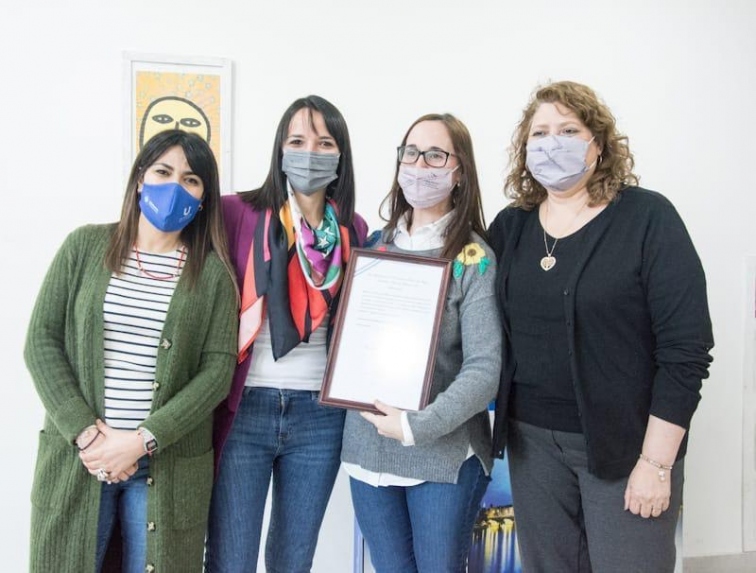 La diputada nacional Carolina Yutrovic junto a la legisladora provincial Victoria Vuoto y a la secretaria de Políticas Sociales, Sanitarias y Derecho ...