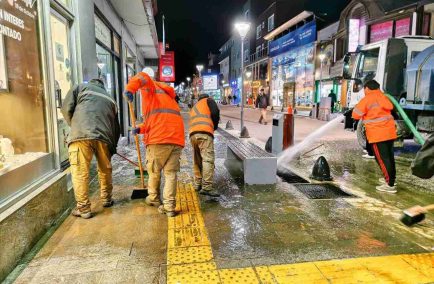 Durante la jornada de ayer, la Secretaría de Ambiente y Desarrollo Sustentable y la Secretaría de Planificación e Inversión Pública (Servicios Públicos) llevaron adelante una intervención en la zona céntrica, realizando limpieza de alcantarillas pluviales, lavado de veredas y la preparación de superficies para su posterior pintura en la jornada de hoy.