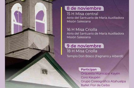 La apertura de la conmemoración será la Misa Central, que se llevará adelante en el atrio del Santuario de María Auxiliadora de la Misión Salesiana. Luego, la Orquesta Municipal Kayén ofrecerá un repertorio especial en el marco de la representación de la Misa Criolla, junto al Coro Kaupén (ISES), el Grupo Coreográfico Atahualpa y el Ballet Flor de Ceibo, realzando con música y danza este homenaje a la obra salesiana en nuestro país.