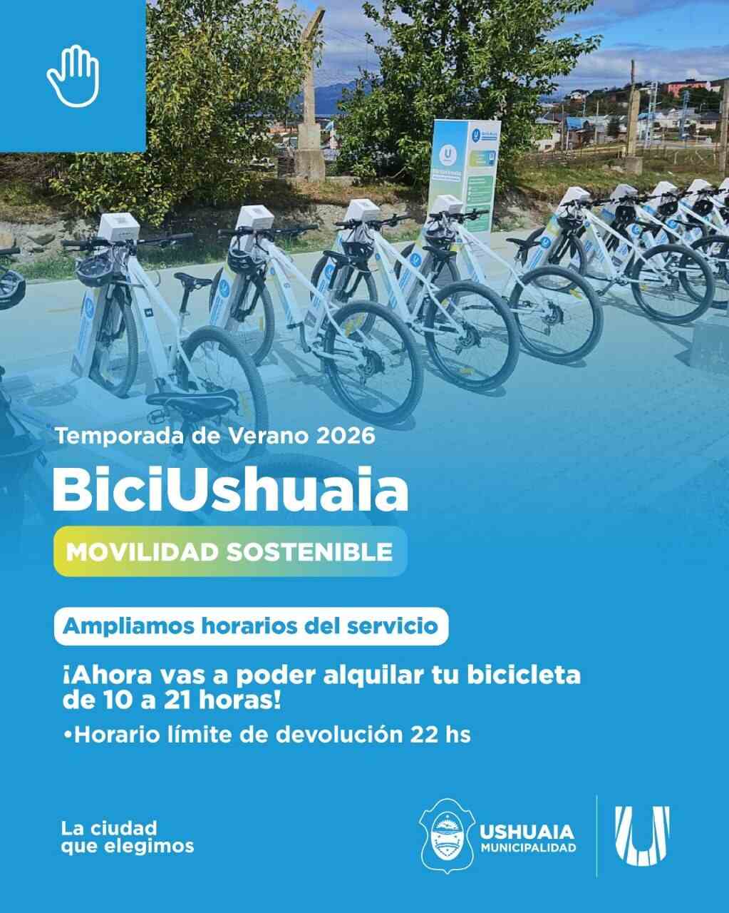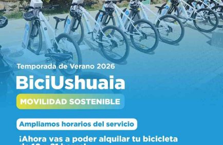 La Municipalidad de Ushuaia, a través del Instituto Municipal de Deportes (IMD) informa a los usuarios y usuarias que, a partir del lunes 12 de enero, se extiende el horario del programa de movilidad sustentable “BiciUshuaia”, que funcionará de 10 a 22 horas durante la temporada de verano.