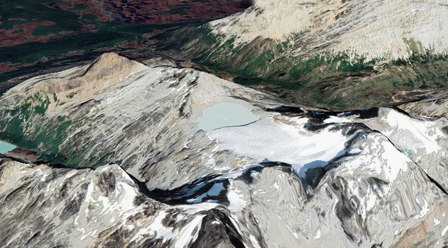 Al alcanzar la cumbre, la palabra no describe el paisaje: lo constituye. Y el caminante, ahora dentro de la evocación, puede leer los nunataks encadenados en círculo ya no como simples cumbres; sino como la órbita ocular rocosa que delimita la cuenca receptiva. En su centro, la laguna lechosa fruto del limo glaciar; se revela como la pupila y el umbral turbio y sensitivo por donde este órgano gigantesco simula que percibe. Y en la pared norte del cuenco, el glaciar aparece colgado como una lágrima invertida: dulce y congelada, parte de un llanto que en lugar de derramarse hacia fuera, se vierte hacia dentro, alimentando de eternidad a su propio iris.