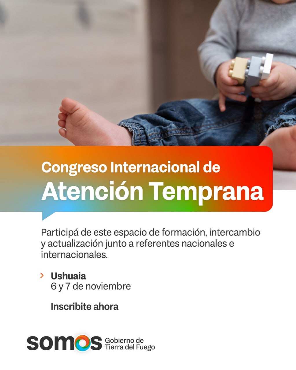 El Gobierno de Tierra del Fuego, Antártida e Islas del Atlántico Sur invita a participar del Congreso Internacional de Atención Temprana que se desarrollará del 6 al 7 de noviembre en Ushuaia.