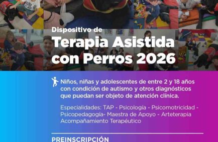La Secretaría de Políticas Sociales, Sanitarias y Derechos Humanos abrió la preinscripción para el Dispositivo de Terapia Asistida con Perros (TAP) 2026, una propuesta gratuita destinada a niños, niñas y adolescentes de entre 2 y 18 años con condición de autismo y otros diagnósticos que requieran acompañamiento clínico integral.