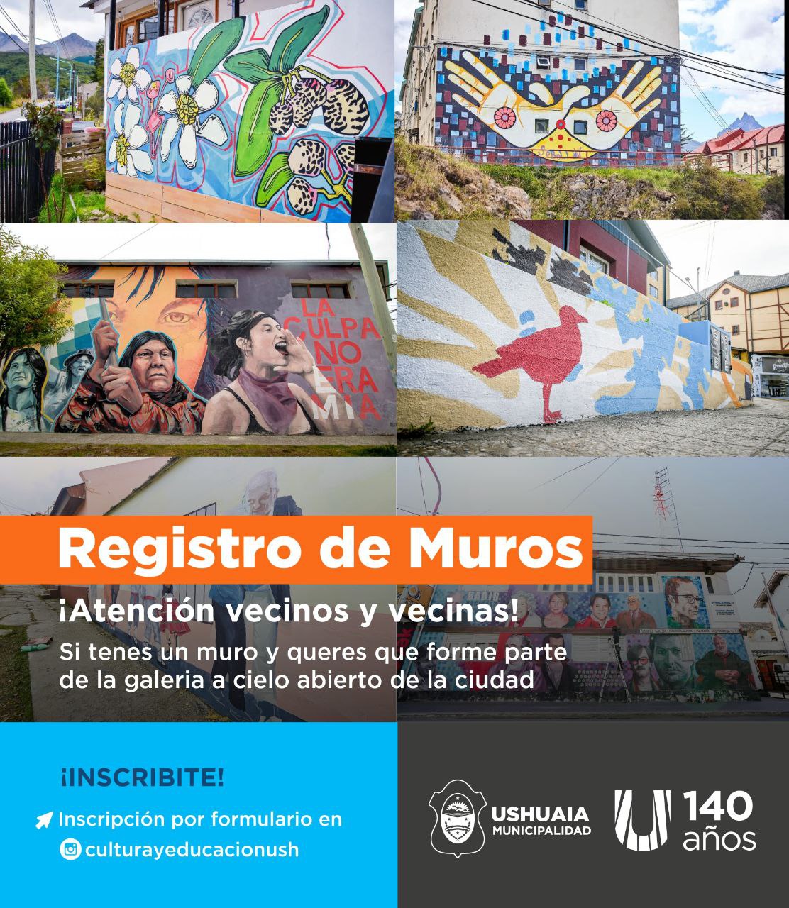 La Secretaría de Cultura y Educación de la Municipalidad de Ushuaia informa a vecinos y vecinas que se encuentran abiertas las inscripciones al registro de muros a ser utilizados por el Programa Municipal de Muralismo.