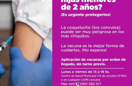 Desde la Subsecretaría de Políticas Sanitarias explicaron que “la coqueluche es una enfermedad respiratoria altamente contagiosa que puede resultar grave, sobre todo en menores de dos años. La vacunación es la herramienta más efectiva para cortar la cadena de transmisión y cuidar la salud de toda la comunidad”.