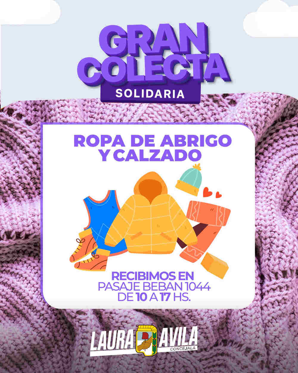 La concejala y secretaria general del Partido Justicialista TDF, Laura Avila, lanzó una Gran Colecta Solidaria destinada a reunir ropa de abrigo y calzado para acompañar a familias y personas de la ciudad que atraviesan el invierno con mayores dificultades.
