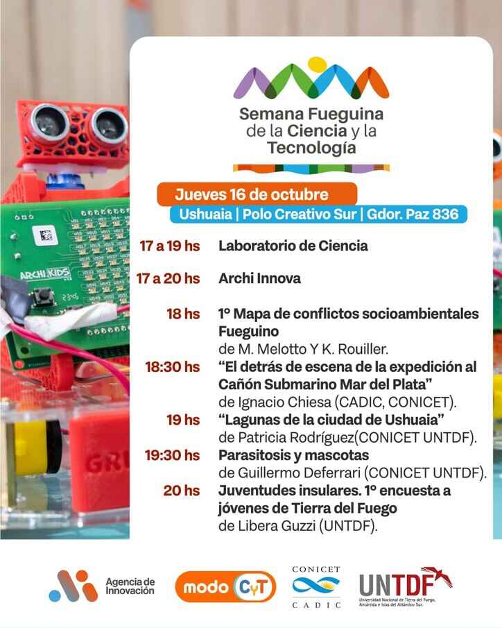 Esta segunda edición, organizada entre el CADIC- CONICET, la Secretaría de Ciencia y Tecnología y la UNTDF, propone actividades para toda la comunidad, con una programación simultánea en distintos puntos de la provincia, que incluirán ferias interactivas, charlas abiertas, talleres, visitas guiadas, experiencias de laboratorio abierto, proyecciones audiovisuales y contenidos digitales, priorizando la articulación con escuelas, universidades, centros de investigación y organizaciones sociales.