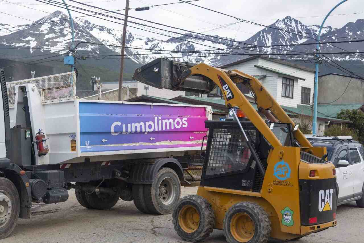 El secretario de Medio Ambiente, David Ferreyra, sostuvo que “estuvimos trabajando en veredas y calles de distintos barrios que sufrieron anegamientos por la salida de cauce del arroyo Buena Esperanza”, entre ellas “Aldo Motter y el camino al Glaciar Martial, Fuegia Basket, Damiana Fique y arterias aledañas”.