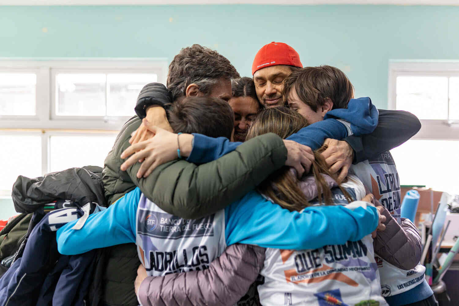 "Fue una jornada de mucha emoción y esfuerzo físico, con el viento que por momentos se cruzaba," contaron desde el equipo. "Federico terminó el primer día alcanzando el objetivo y eso nos deja a todos contentos y con mucha energía para seguir esta cruzada solidaria que tiene como único objetivo juntar fondos para que el CAAD Ushuaia tenga su edificio propio."