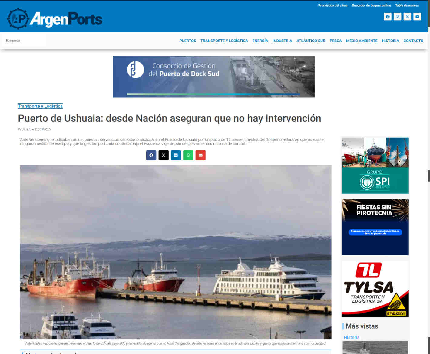Globalports, empresa multimedios y consultora del sector portuario, marítimo y logístico, aclaró que las versiones publicadas no se sustentan en actos administrativos formalizados, ni en comunicaciones oficiales que den cuenta de una medida de esa naturaleza. Verificando que no se ha dispuesto una intervención del puerto, ni se ha modificado el esquema de conducción institucional de la terminal fueguina.