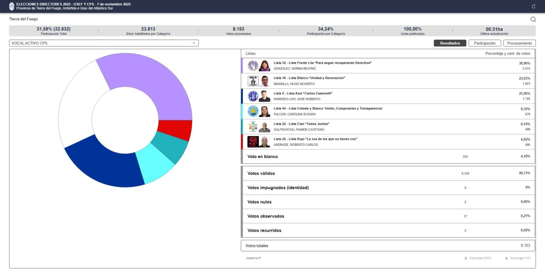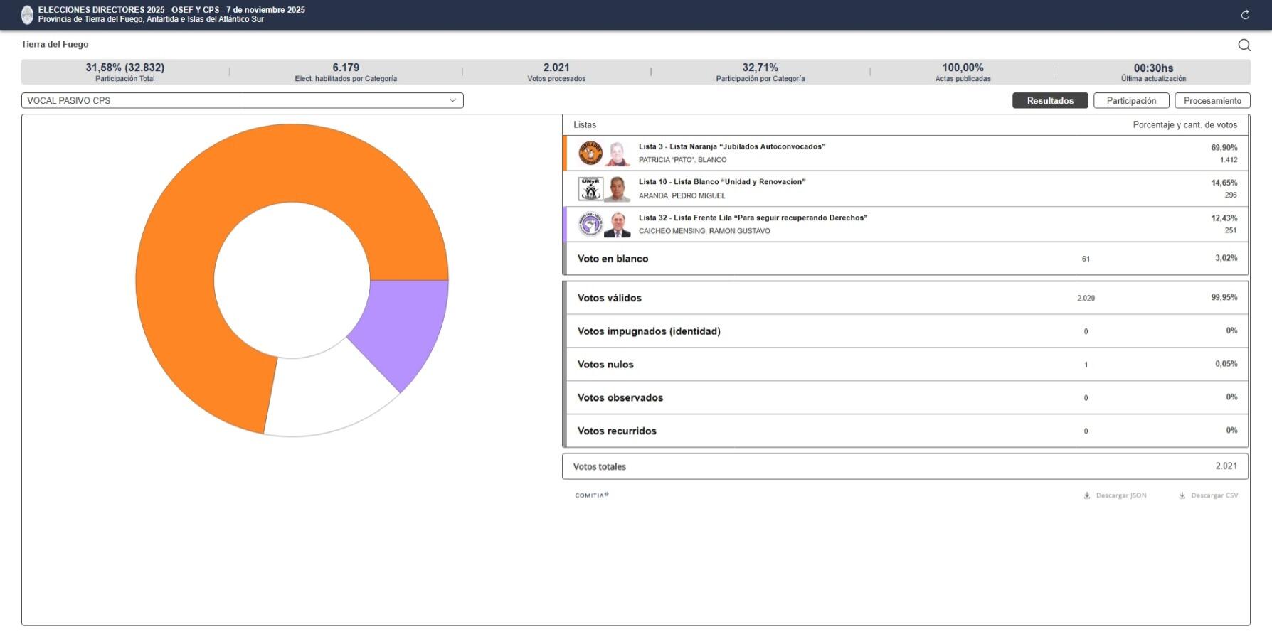 Se definieron los nuevos vocales para la Obra Social del Estado Fueguino y a la Caja de Previsión Social. Los electos para la OSEF por los activos Adriana Soria y por los pasivos Horacio Gallegos. Para la CPS por los activos Norma Gonzales y los pasivos Patricia Blanco.