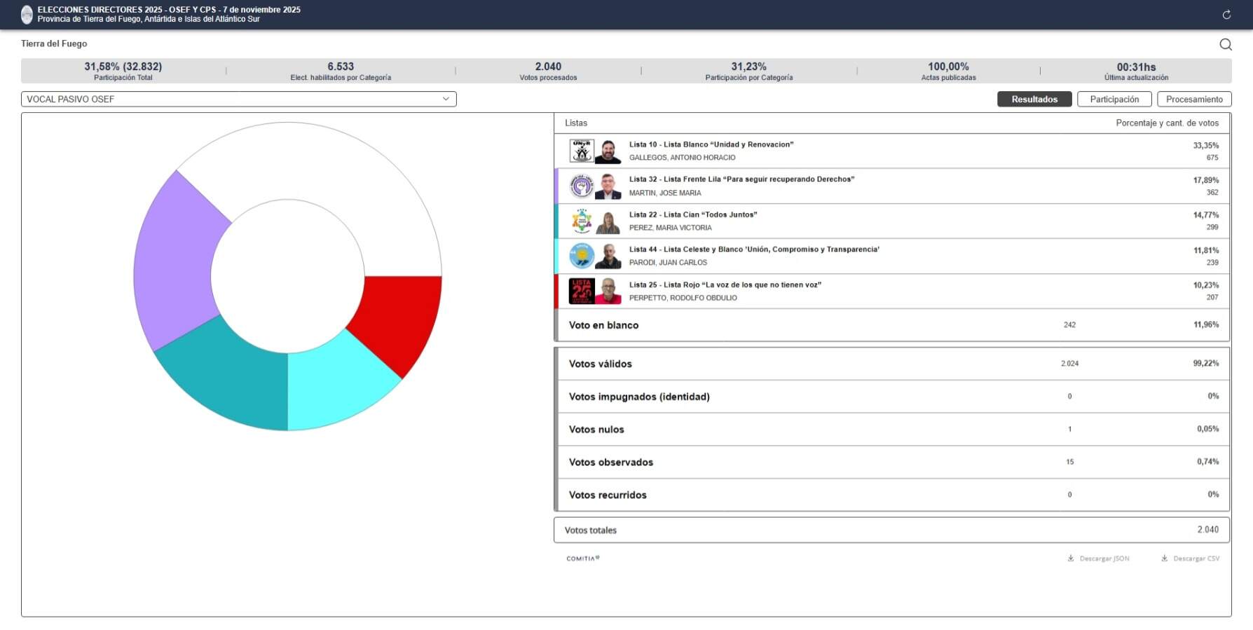 Vocal Pasivo OSEF: la Lista Nº 10 Blanca “Unidad y Renovación”, encabezada por Horacio Antonio Gallegos, se posiciona el 33,35% .