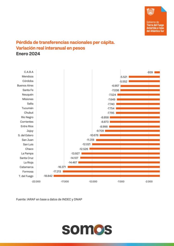 El último informe del Instituto Argentino de Análisis Fiscal señala que la provincia de Tierra del Fuego se posiciona como una de las más afectadas por la disminución de los fondos provenientes de la Coparticipación Nacional remesados por el Gobierno central.